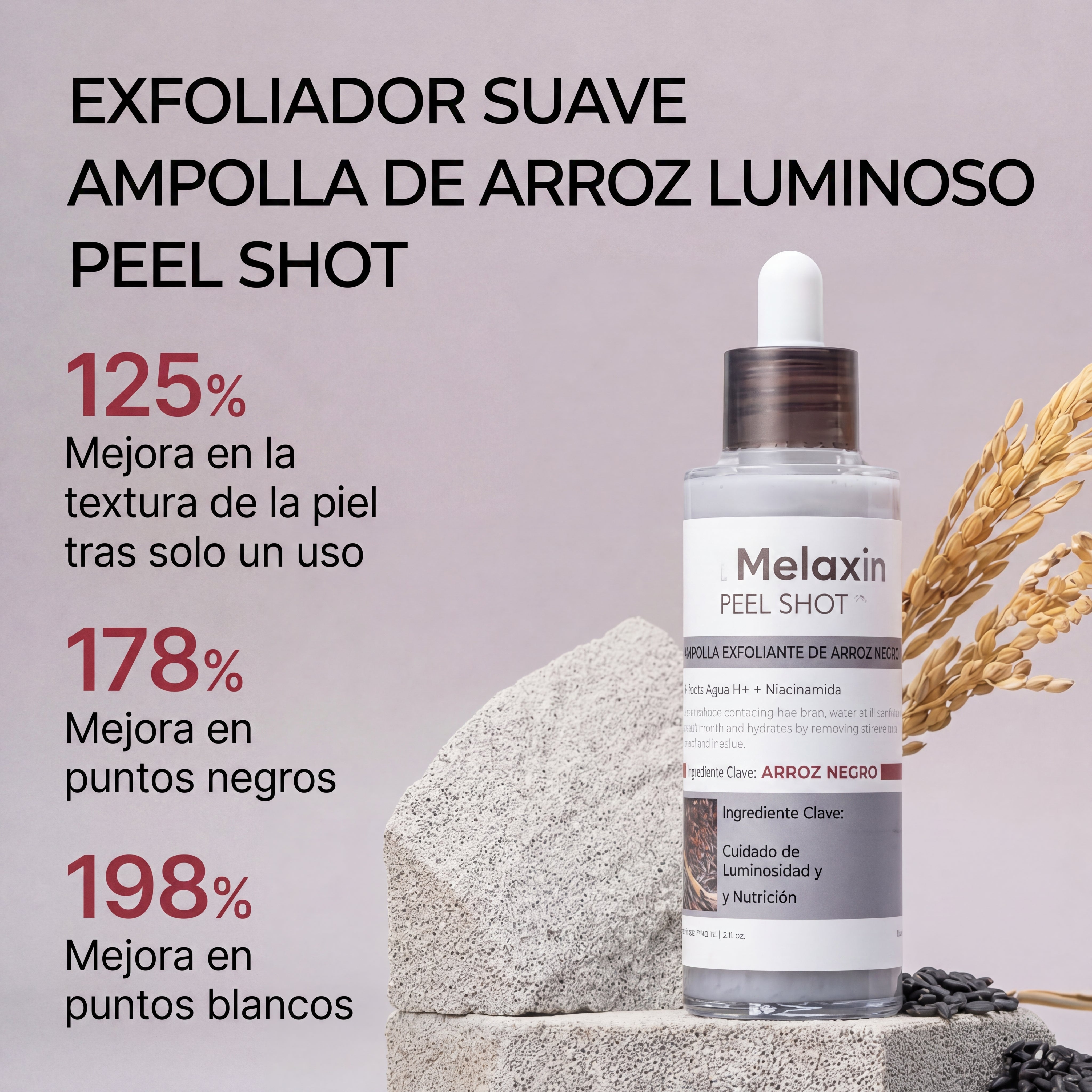 Logra una piel de cristal sin la irritación de los ácidos comunes. Nuestra fórmula 4 en 1 con arroz negro purifica poros y renueva texturas, manteniendo la hidratación profunda que otros tratamientos eliminan.